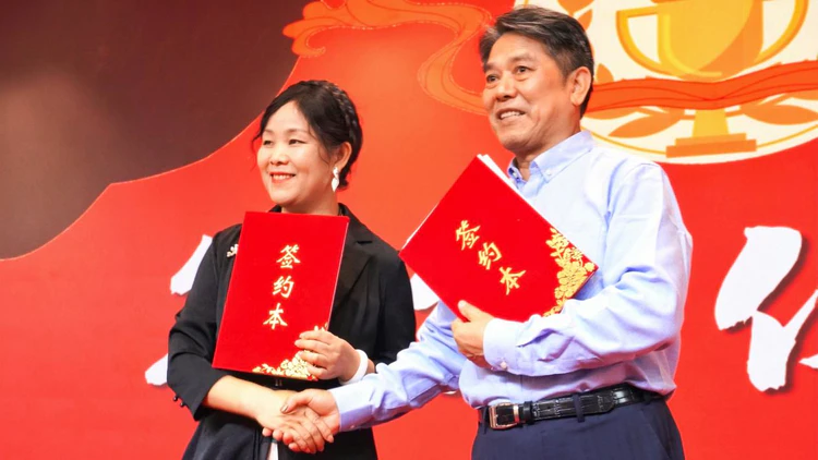 第三届全球中医春晚上海会场总策划、总指挥张辰女士与红太阳商业广场董事长李三瑞先生战略签约