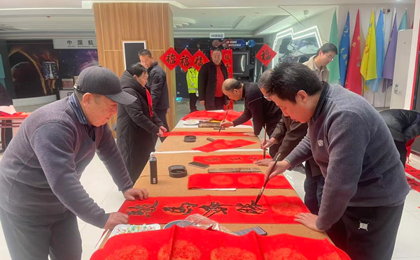 随着筹备会议各项议程圆满完成,与会人员移步一楼大厅,开启“万福迎春”公益送福活动。活动现场,书画老师们齐聚书写台,凝神挥毫,一幅幅笔力遒劲的春联、一个个饱含吉祥的“福”字跃然纸上,墨香四溢。
