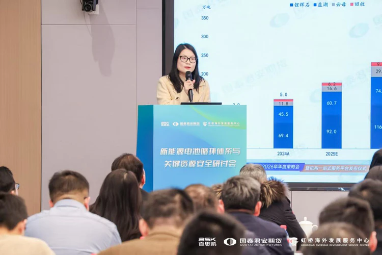 国泰君安期货研究所首席研究员邵婉嫕则从市场与产业维度,发表了《从储能增长到资源重构:新能源进入“锂循环基础设施”时代》的演讲。她通过详实的数据,展示了全球及中国储能市场爆发式增长对锂资源的巨大需求牵引,并分析了资源供需错配带来的价格风险。邵首席认为,构建规模化、规范化的锂电池回收循环体系,是平抑资源价格波动、保障供应链稳定的关键举措,标志着新能源产业正从依赖初级资源开发转向依靠循环基础设施支撑的新阶段。
